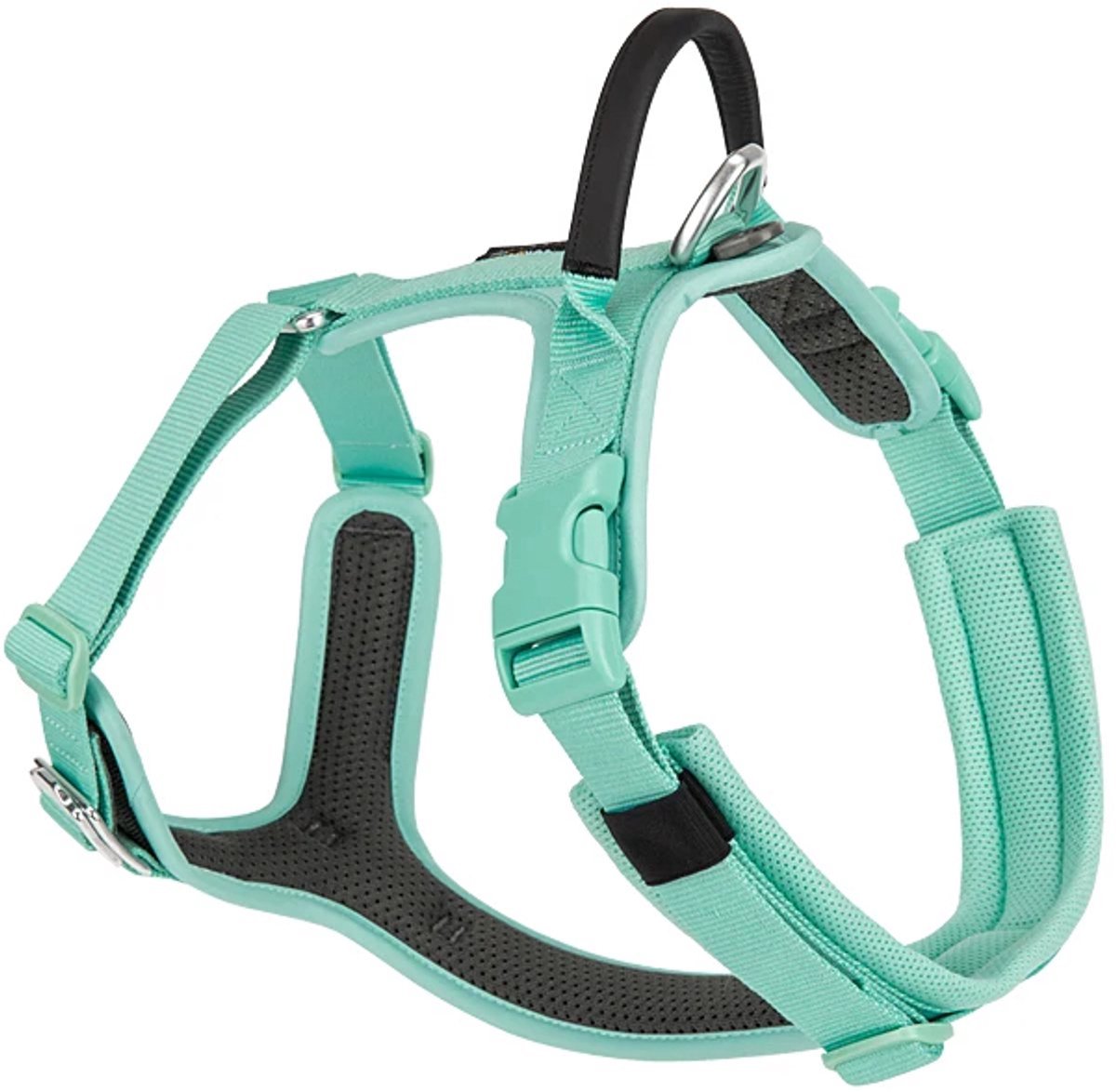 Met twee bevestigingspunten, één op de rug en één onder de buik, heb je altijd de juiste controle over je hond, ideaal voor wandelingen of trainingen. De stevige, zachte hendel op de rug biedt extra controle, bijvoorbeeld wanneer je je hond snel moet begeleiden of een veiligheidsgordel wilt bevestigen.