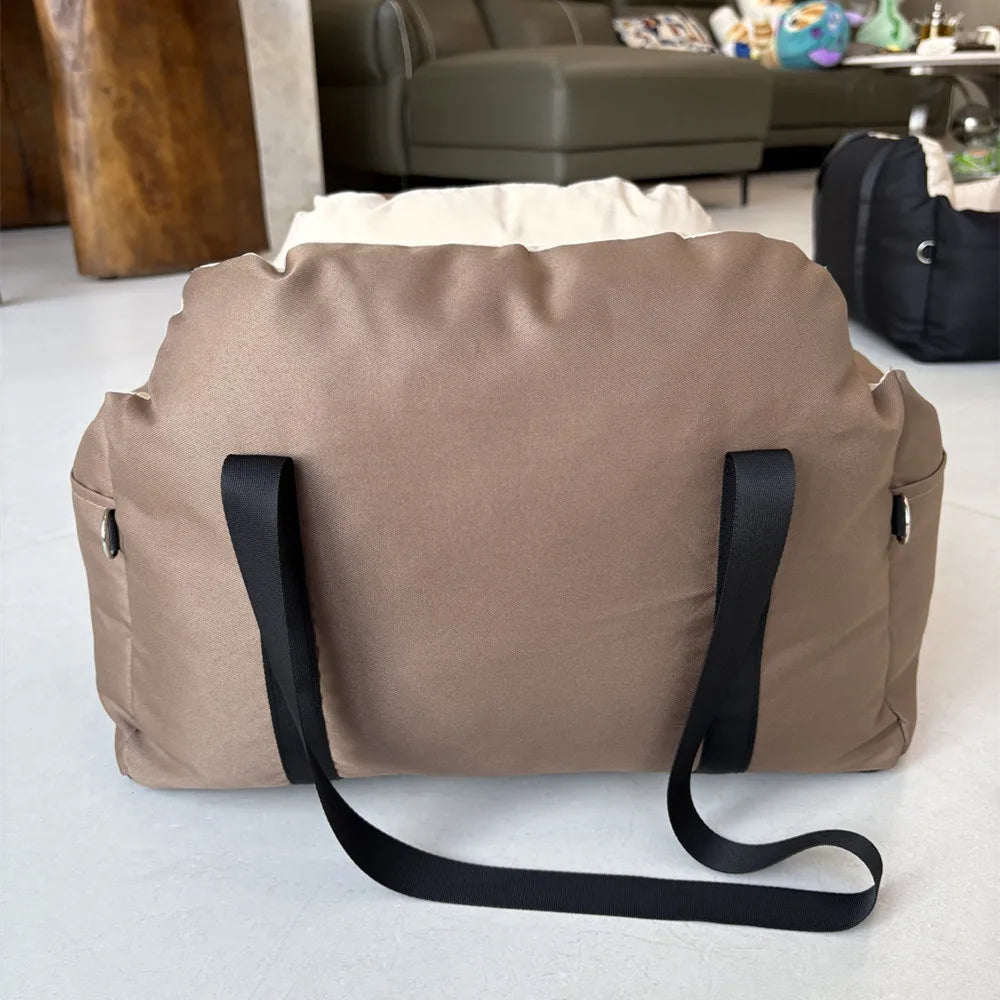 Deze stijlvolle hondenmand combineert veiligheid, comfort en design — ideaal voor zeer kleine tot kleine honden.