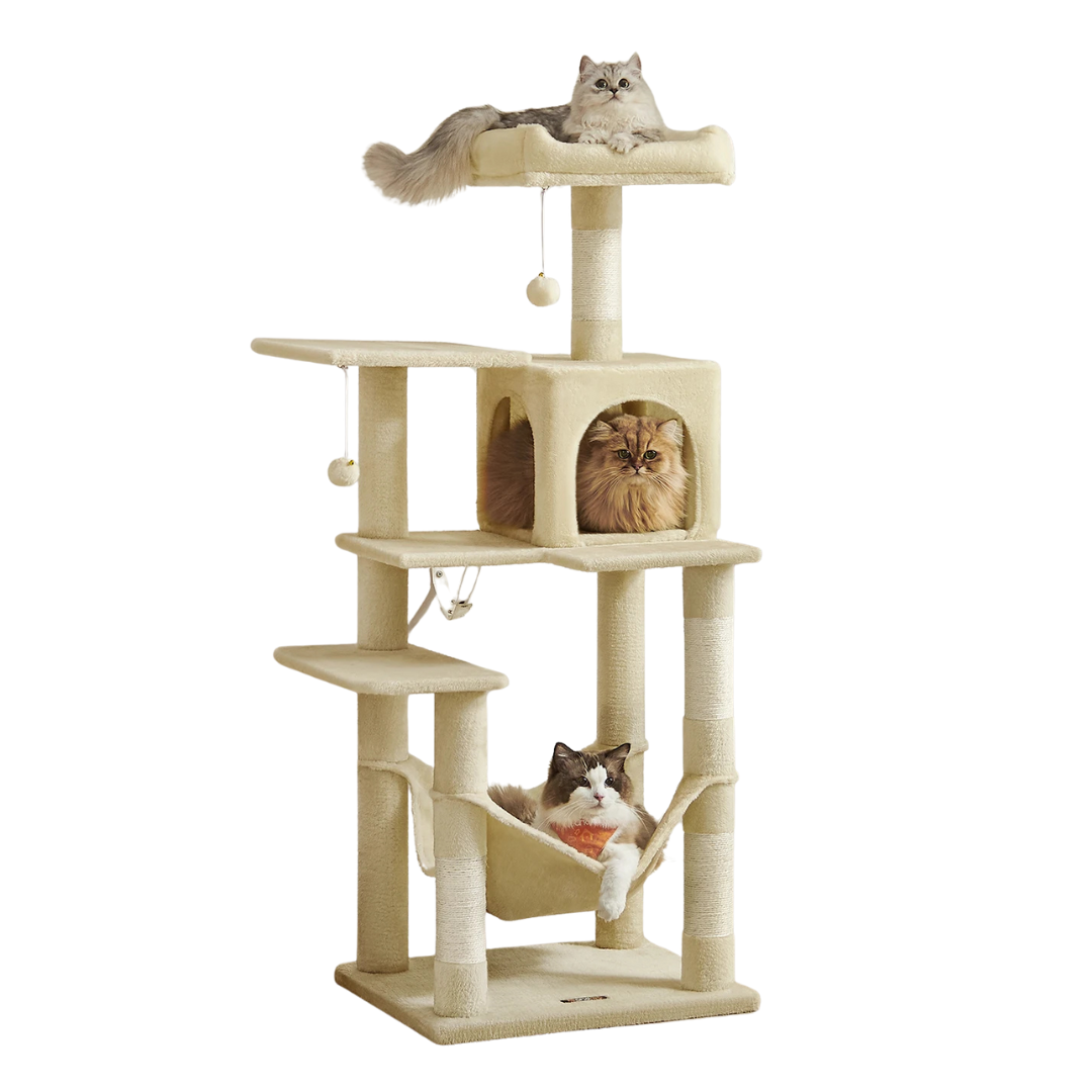 Je kat verdient een eigen plekje waar comfort, avontuur en rust samenkomen. De FEANDREA Cuddly Kattenkrabpaal is ontworpen voor echte knuffelkonten, luie dromers én speelse pootjes. Met zachte pluche, een hangmat en een verstopcave is dit de ultieme relaxplek voor katten tot 5 kg.